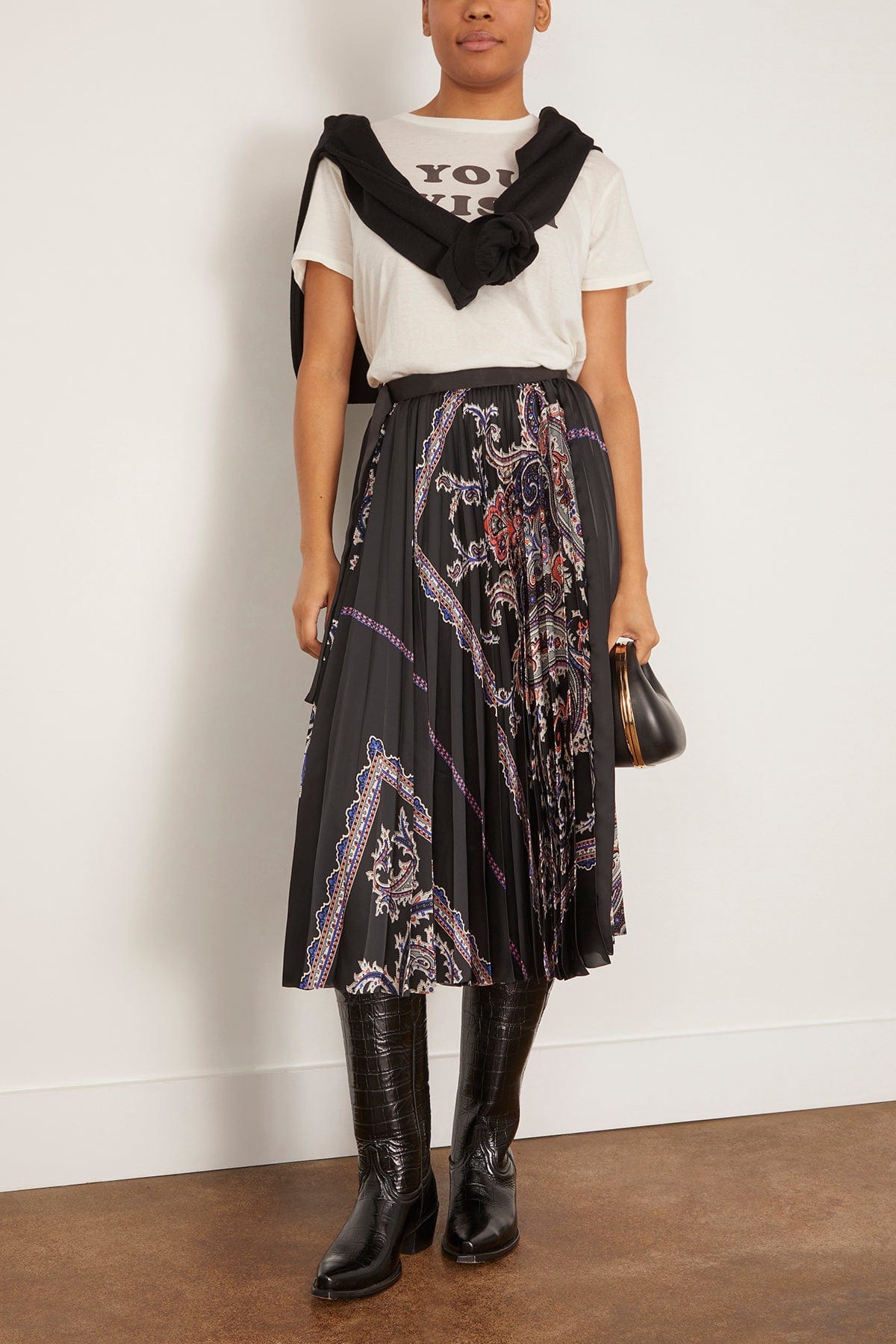 The Sacai Paisley Print Skirt is a must-have piece from their Fall 25 Collection. This midi skirt features allover pleating in a paisley print. Wear yours with a sweater and boots.