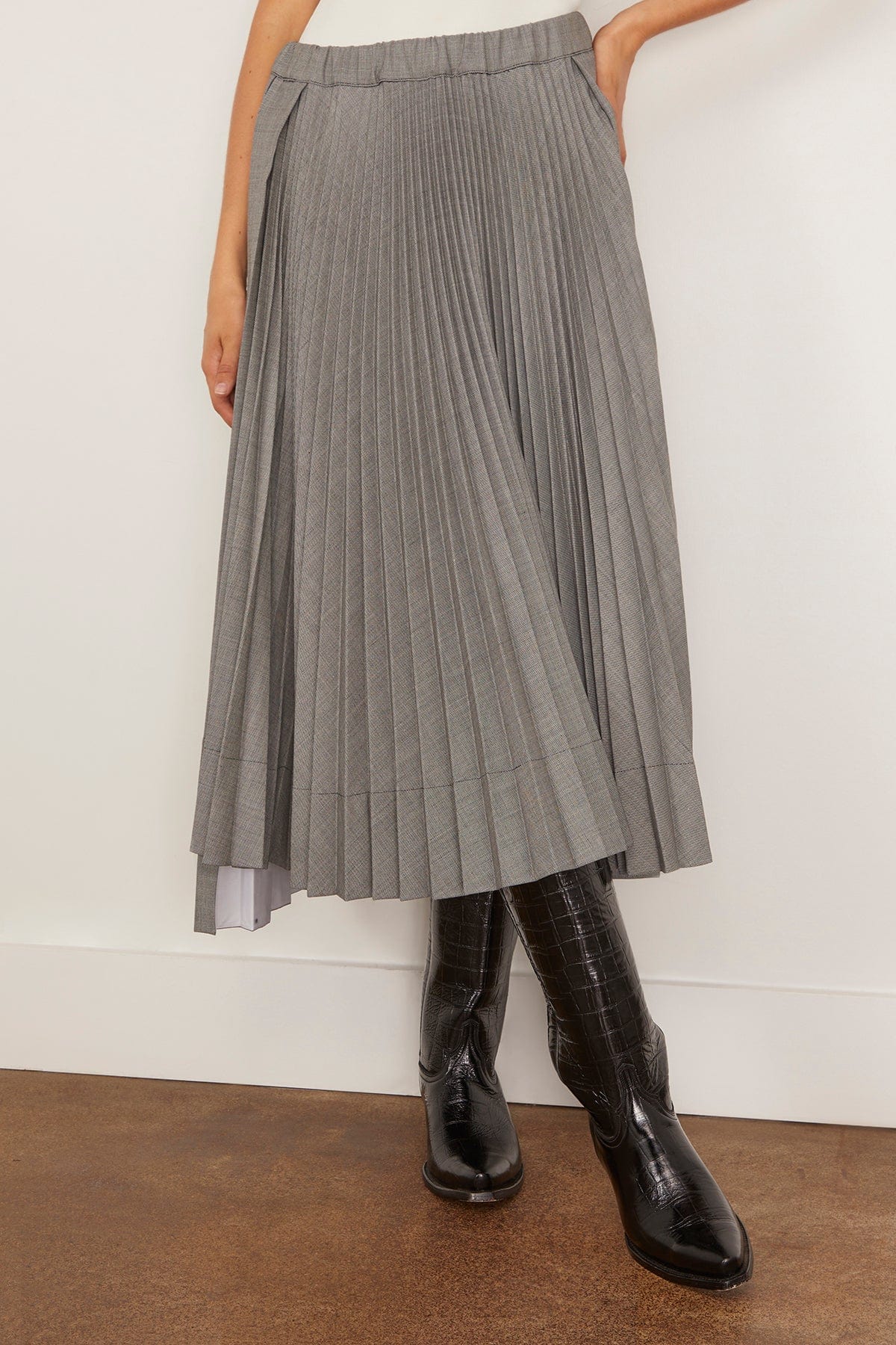 The Plan C Pleated Skirt in Black Melange is a must-have addition to your fall wardrobe. This midi skirt features their signature allover pleating with an elastic waistband for ease. Wear yours with a sweater and mules.