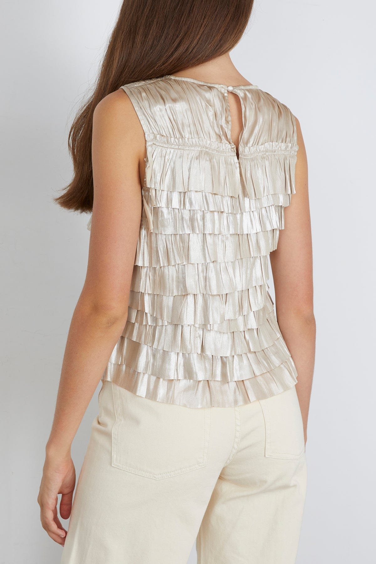 The Ulla Johnson Quinn Layered Sleeveless Top features the unique details you love from this designer. This sleeveless top has a playful, ruffled bodice in plissé satin. Wear yours with the matching skirt and heels.