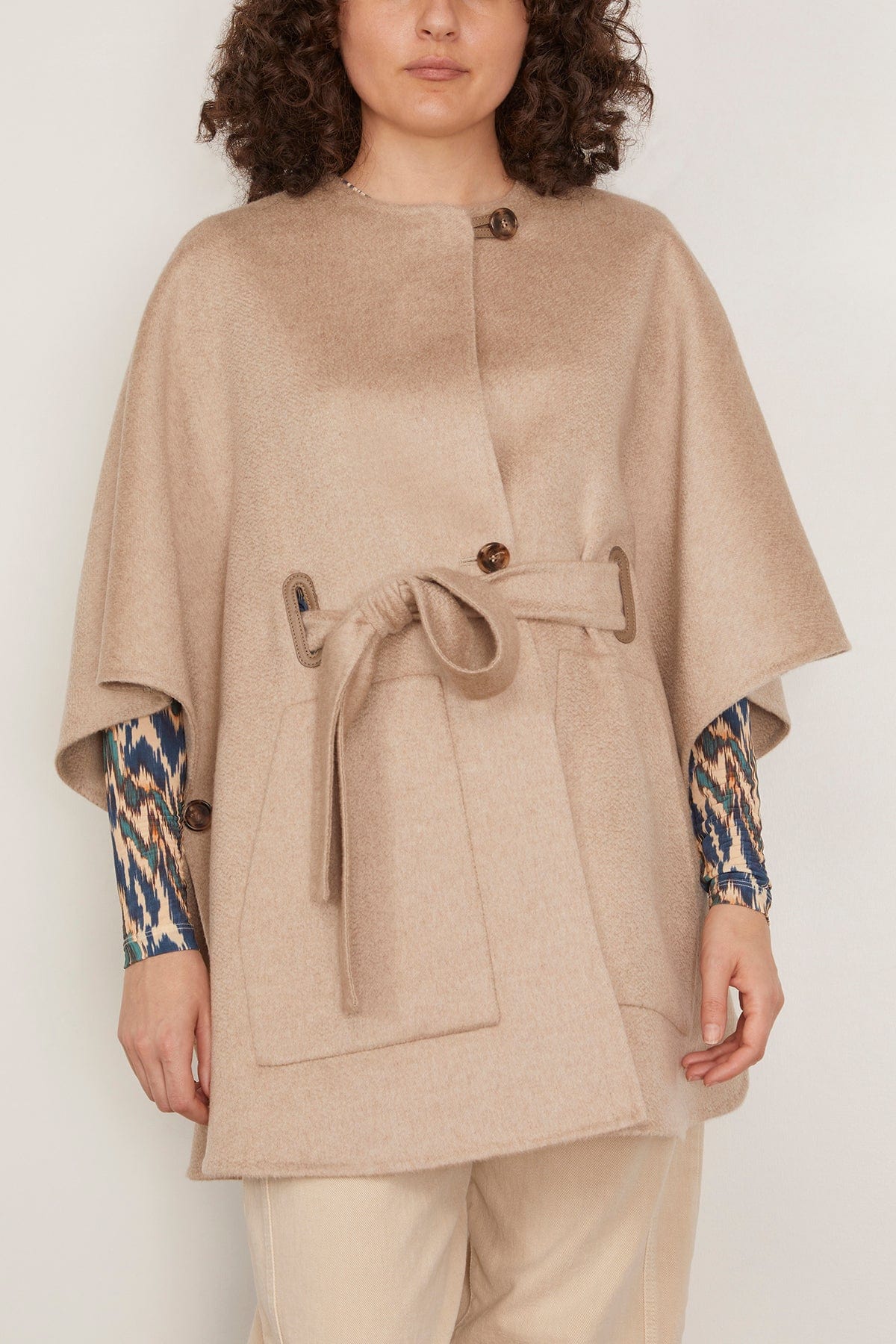 The Max Mara Ring Cape is a timeless addition to your wardrobe. This cape is crafted in cashmere with a self tie belt and relaxed fit. Wear yours with trousers and a sweater.