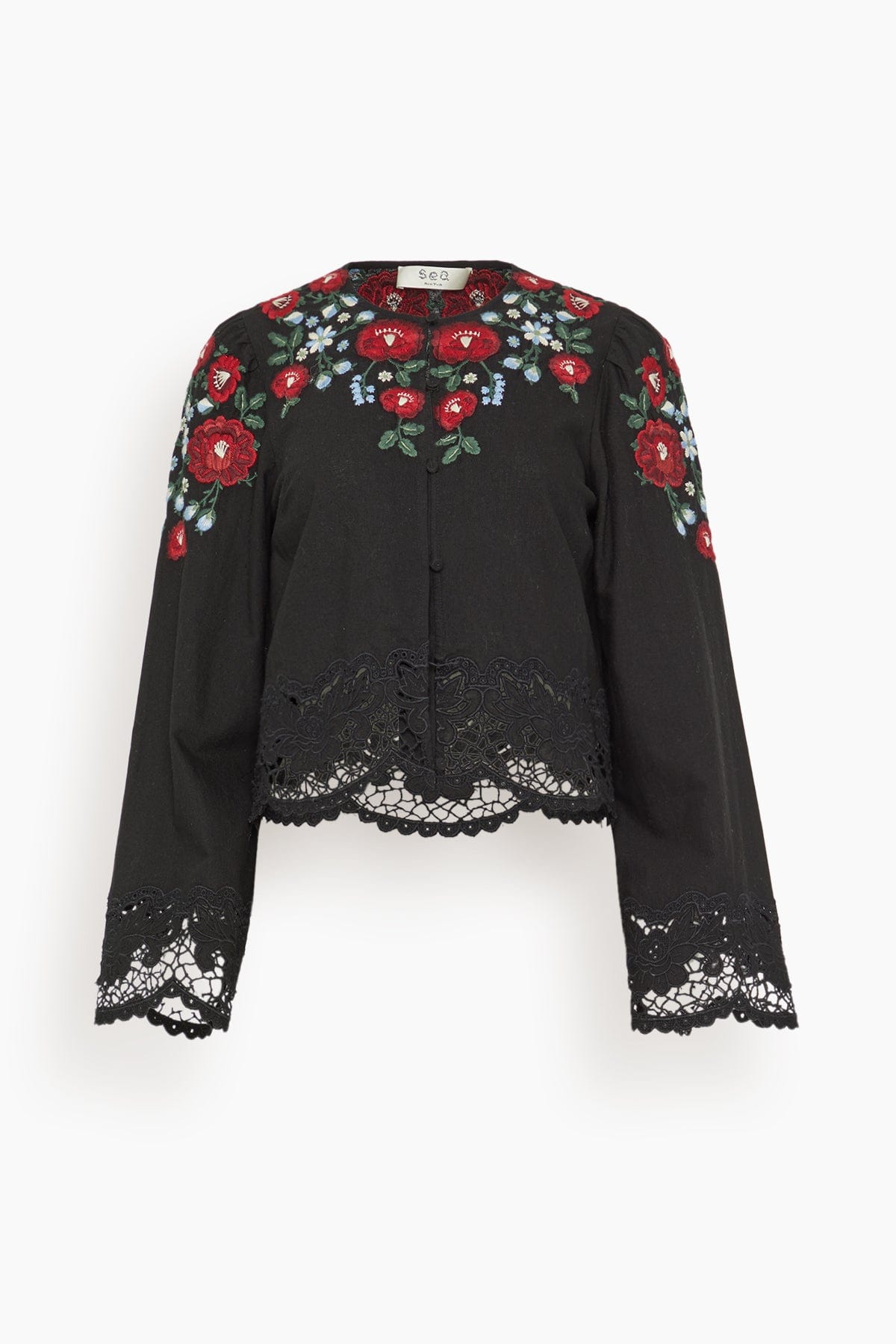 The SEA Rosaline Embroidery Long Sleeve Button Up Top features the unique details you love from this designer. This blouse has a relaxed fit with floral embroidery. Wear yours with jeans and flats.
