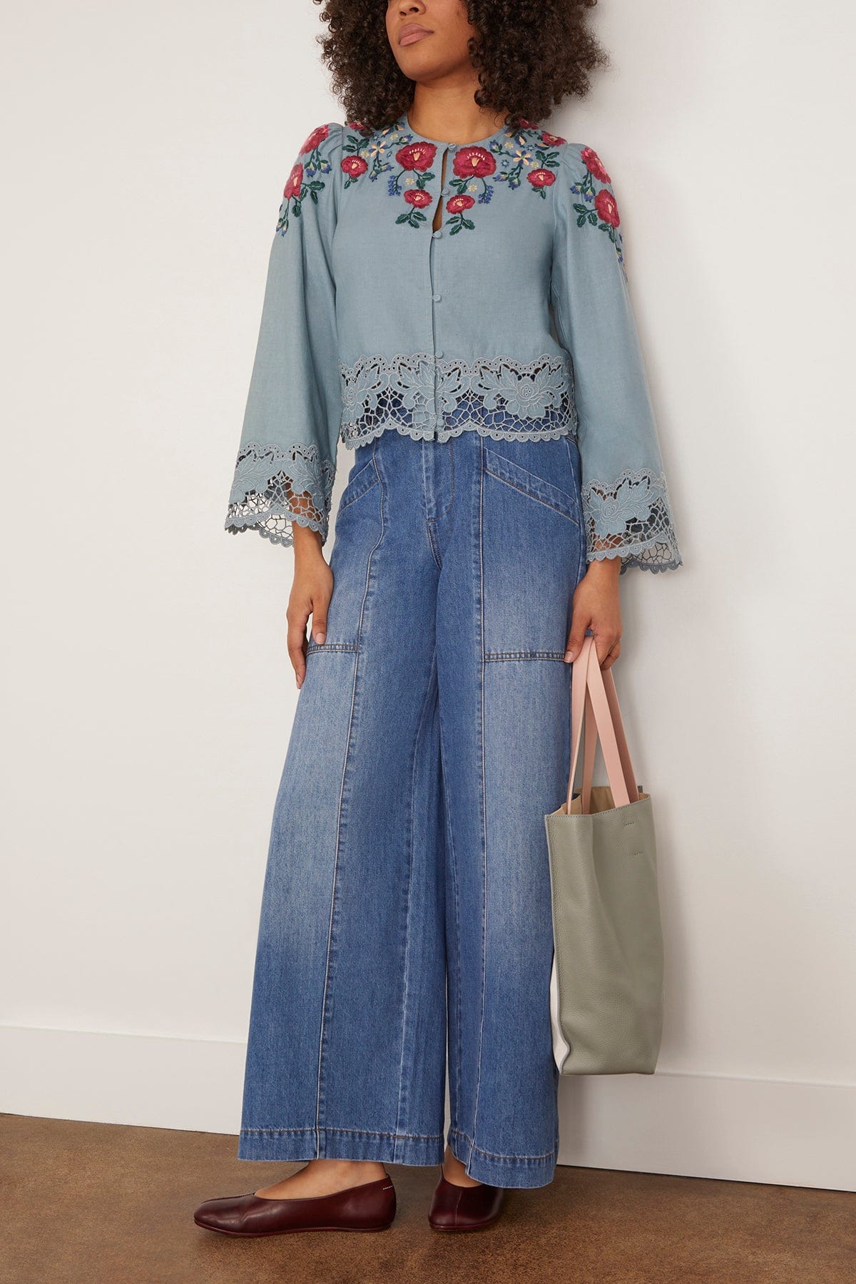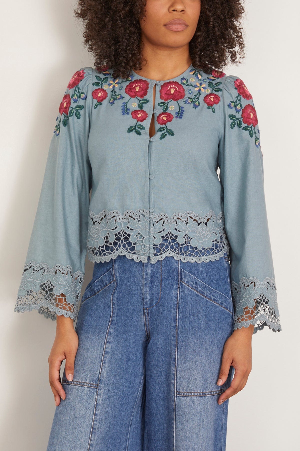 The SEA Rosaline Embroidery Long Sleeve Button Up Top features the unique details you love from this designer. This blouse has a relaxed fit with floral embroidery. Wear yours with jeans and flats.