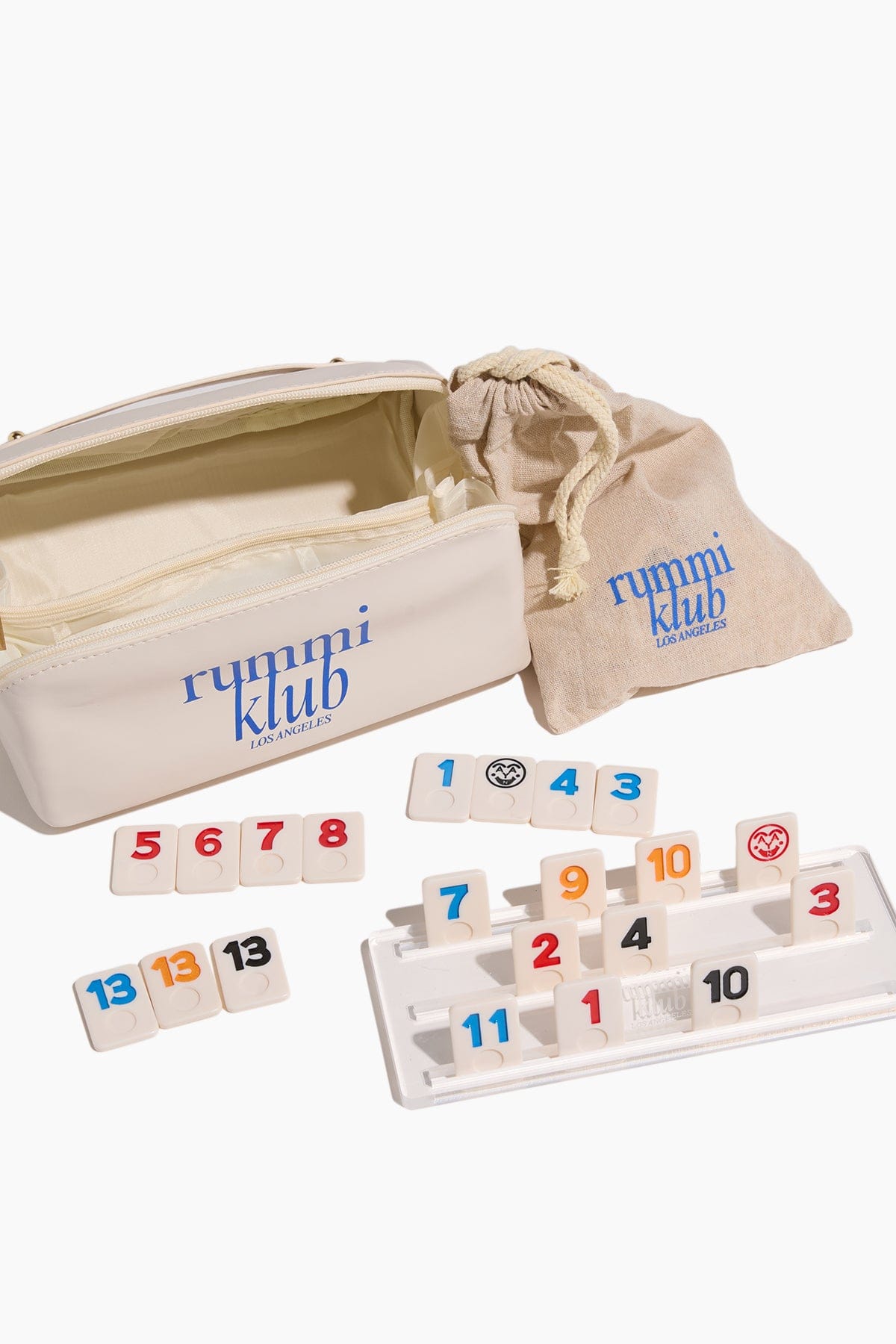 The RummiKlub Rummi Vanity Case Game Set is a modern reimagining of the classic tile game, Rummikub. This set appears as makeup bag, but on the inside includes 106 premium tiles and custom acrylic racks. Perfect for game nights and gifting, and doubles as a chic storage case for essentials.