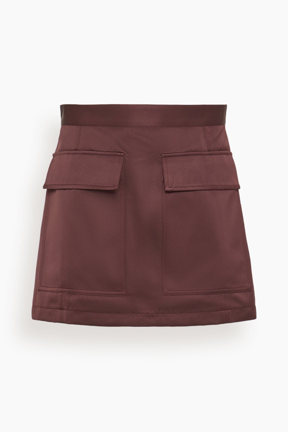 The Plan C Skirt in Dark Burgundy is a must-have piece from their Fall 25 Collection. This mini skirt is crafted in satin with flap pockets. Wear yours with the matching jacket and loafers.