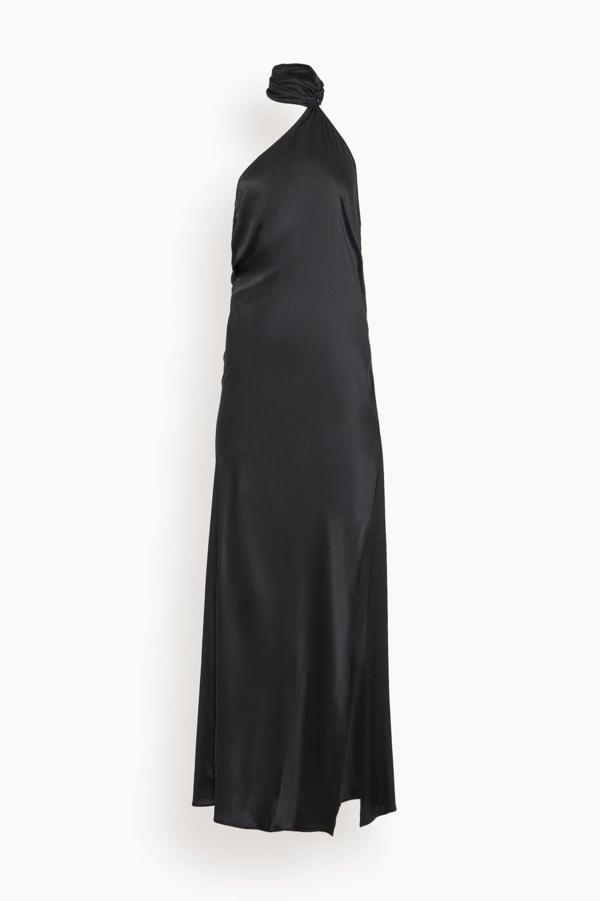 Sleek and unforgettable. The Kiki de Montparnasse Soie Asymmetrical Halter Gown drapes in a fluid silhouette with a sculpted neckline and open low back. A high side slit tempers the floor-length design with just the right touch of seduction—made for commanding the room after dark.