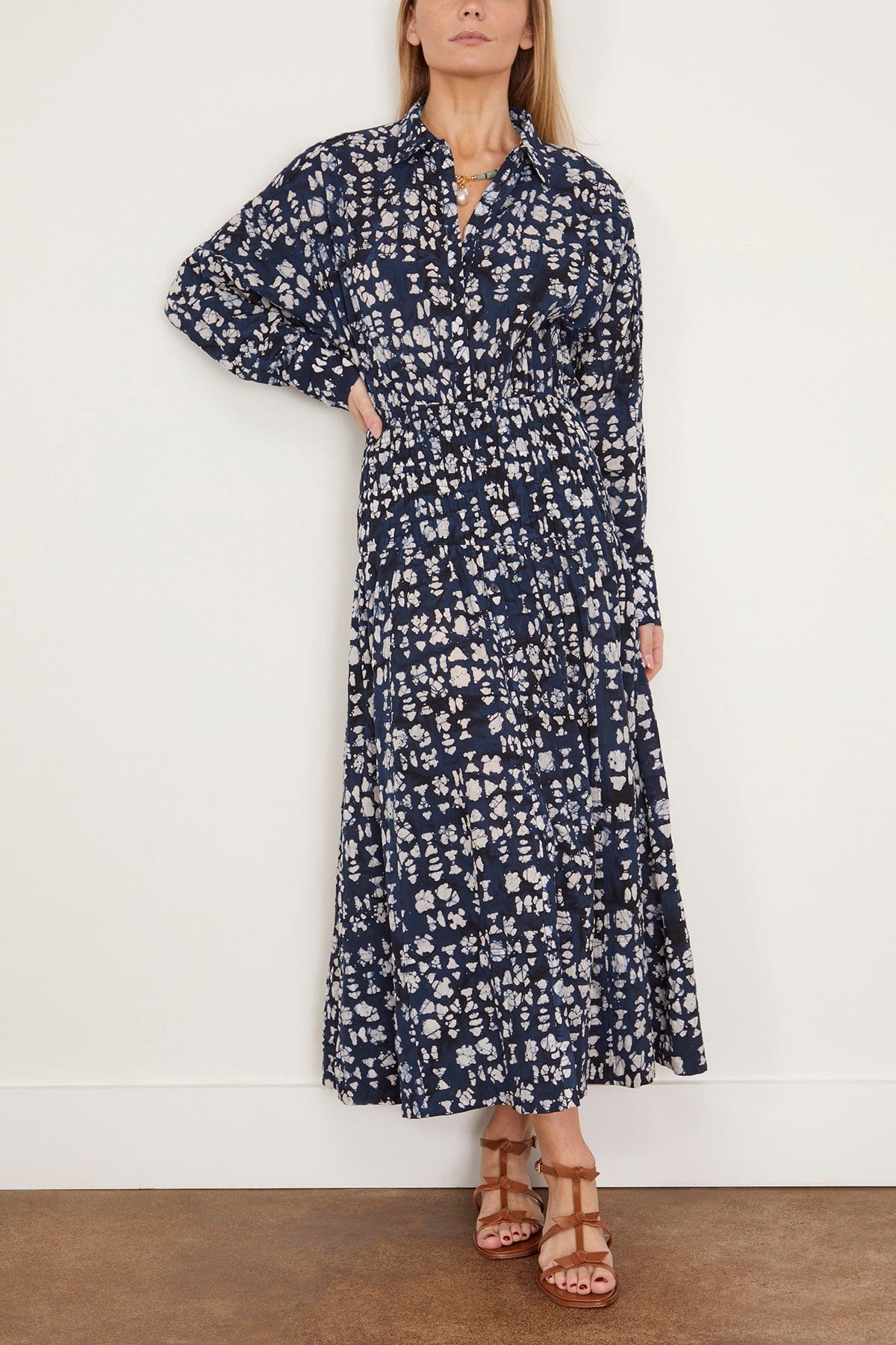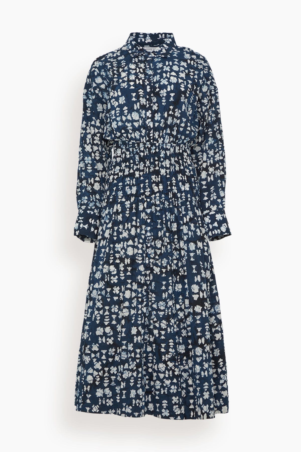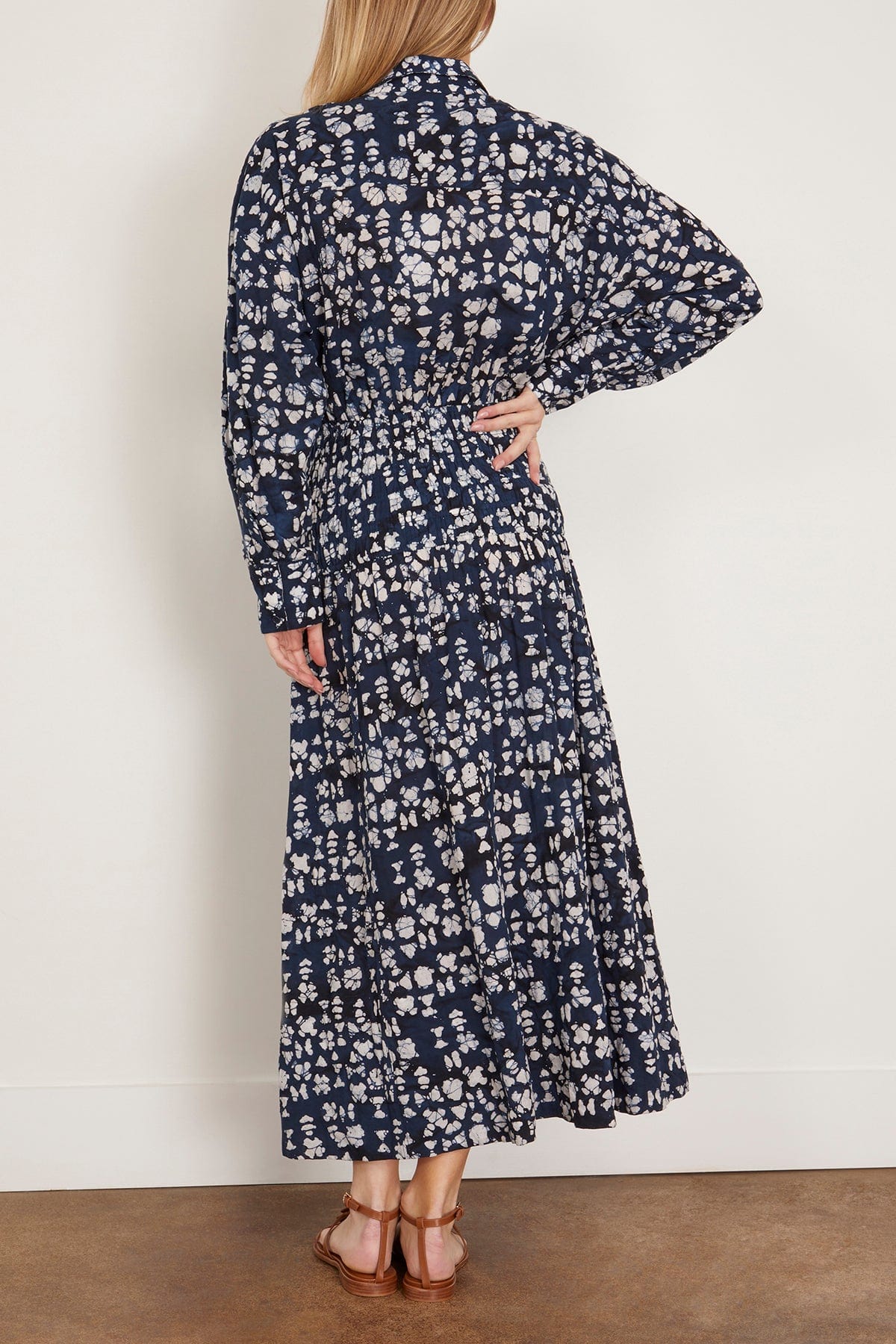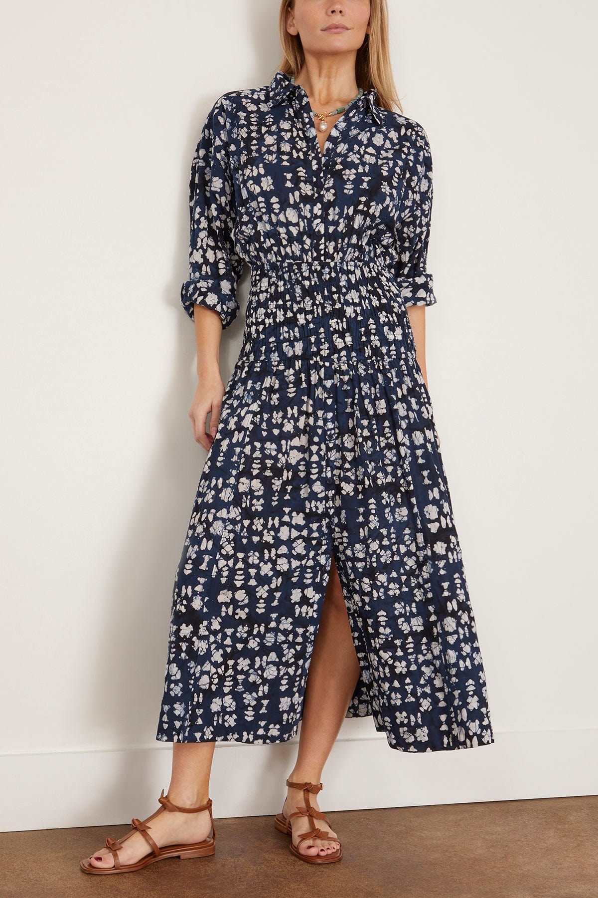 The Apiece Apart Sophia Smocked Shirt Dress in Batik Geo Indigo is crafted with two artisanal techniques: tie dye and batik, an ancient Indian technique of wax resist block printing. This process begins with teak wood blocks that are hand carved by artisans in Tamil Nadu, India. Once the block motif is carved, melted wax is used to stamp the geometric pattern onto the base cloth. The fabric is then tie dyed with Indigo dyes, creating a dynamic contrast of color and dimension. Due to the nature of this process, color and artwork variation is expected and each garment will be unique.