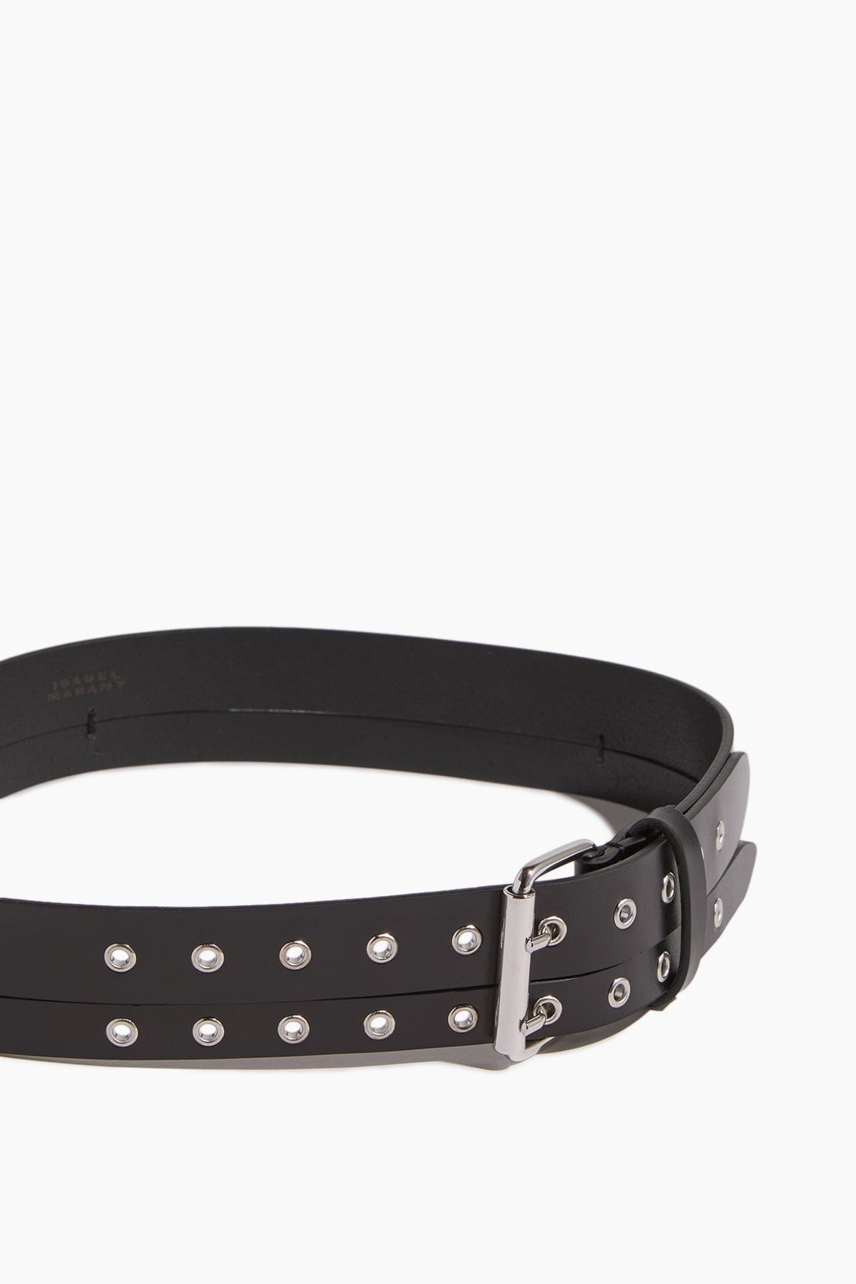 The Isabel Marant Split Belt has the edgy look you love from this designer. This leather belt features an array of silver grommets.