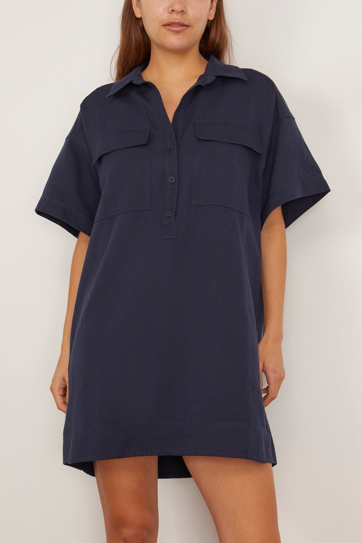 The Apiece Apart Stefana Shift Dress in Navy is an easy mini dress designed to dress up or down, all season long. Crafted from a comfortable blend of cotton and linen.