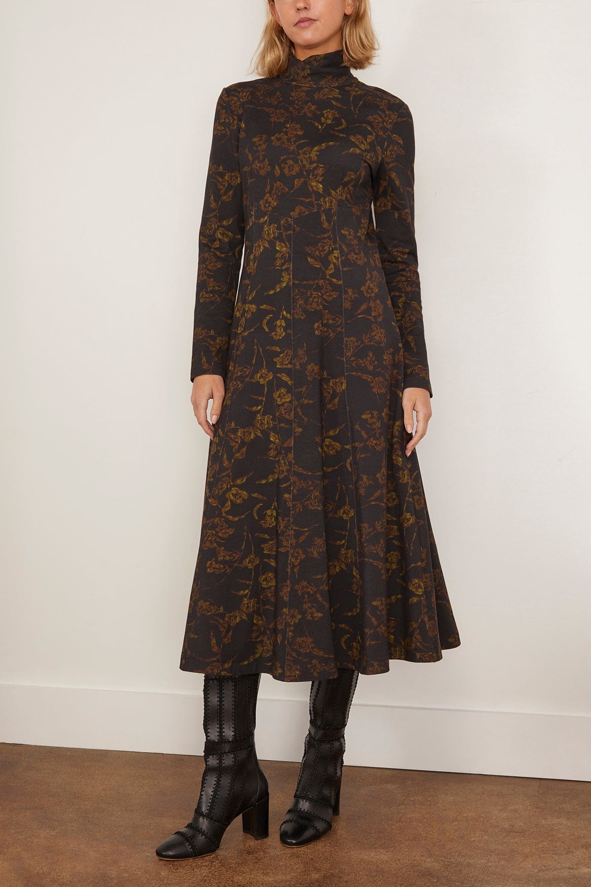 A signature silhouette, the Tanya Taylor Thea Dress is a transitional midi dress staple back for Fall. Featuring a figure-grazing fit, turtleneck, and midi-length hemline, Thea is soft to the touch and offers stretch, while retaining its feminine shape.