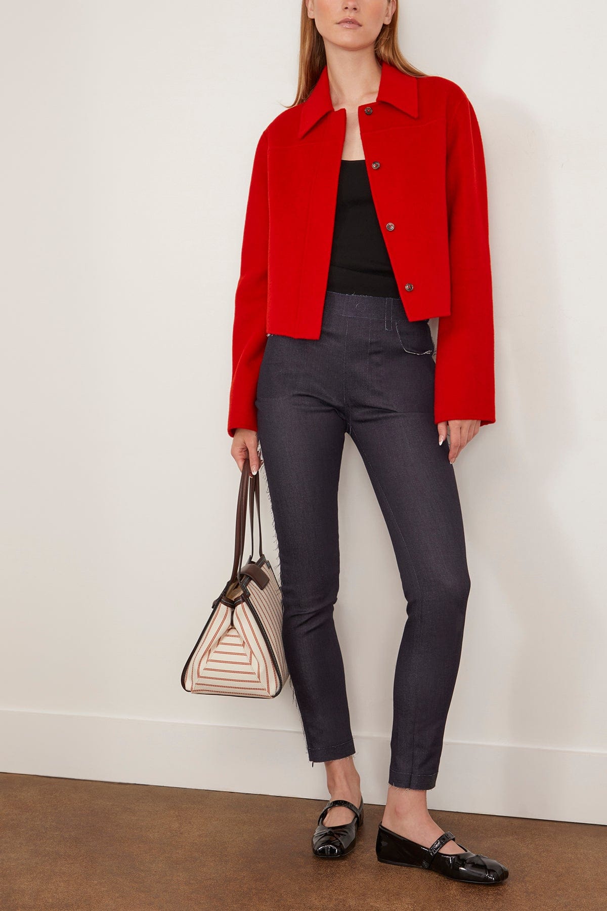 The Marni Trompe Loeil Trouser have a standout frayed edge. These trousers feature a structured style in a dark wash denim. Wear yours with a blouse and flats.