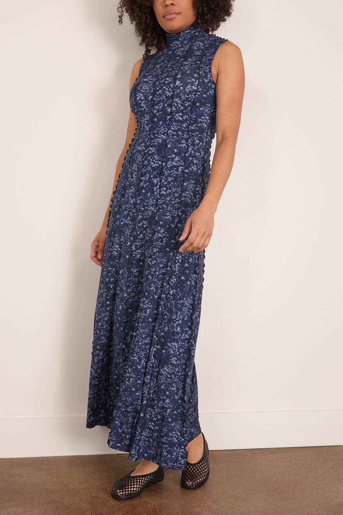 The Proenza Schouler Valentina Dress in Printed Jersey is crafted in a soft jersey fabrication to a sleeveless turtleneck silhouette with a full sweep.