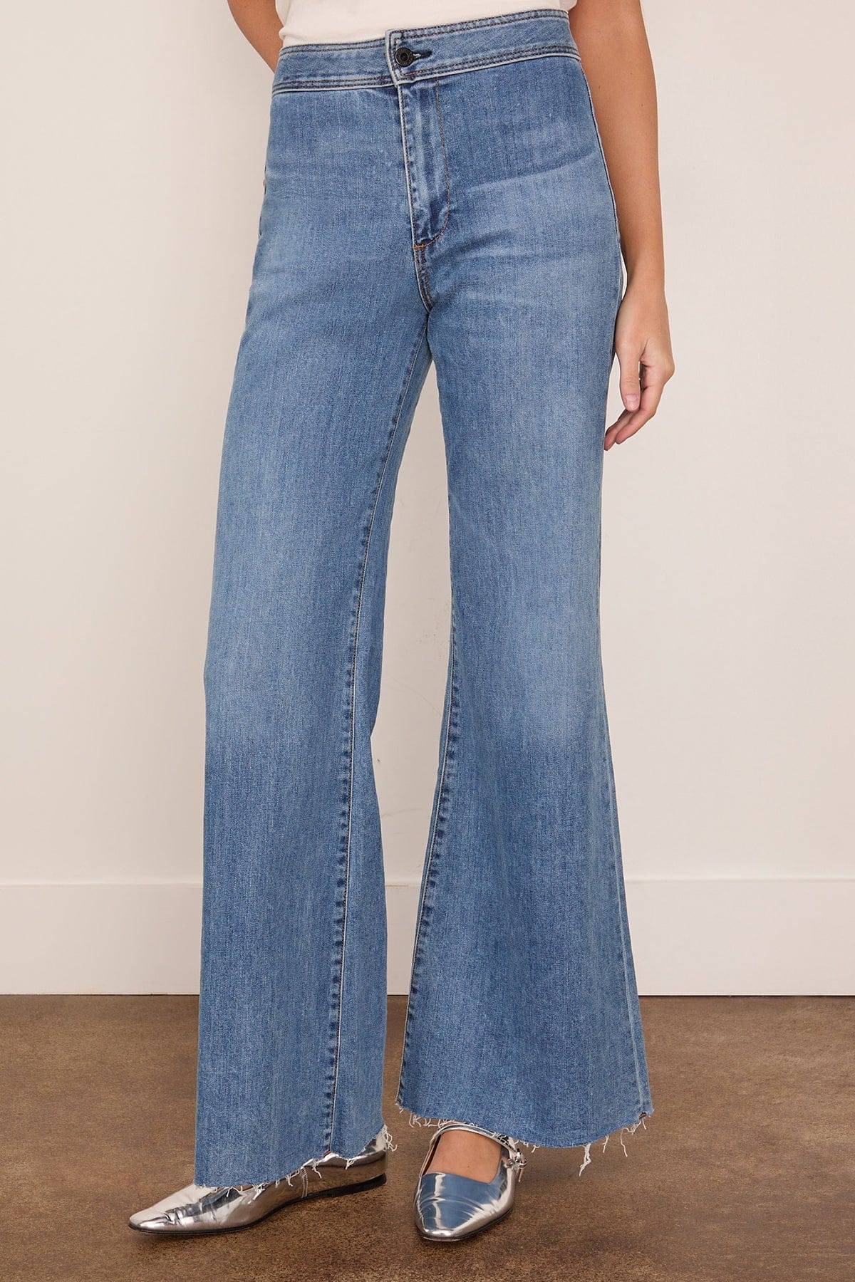 The Askk NY Wooster Jean have a vintage inspired look you'll love. These jeans have a flattering high rise with a wide, flared leg in their signature Japanese stretch denim. Wear yours with a blouse and boots.