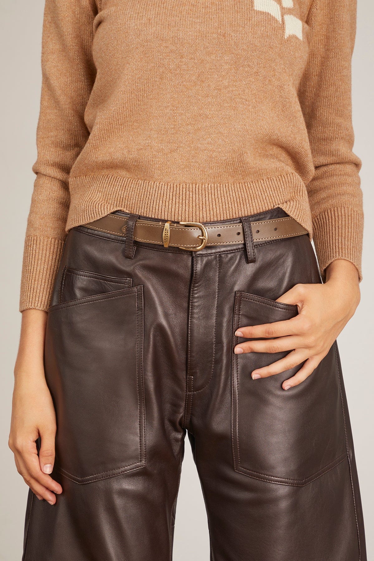 The Isabel Marant Zadd Belt will be in your wardrobe for years to come. This leather belt features contrasting stitching with a classic brass buckle.